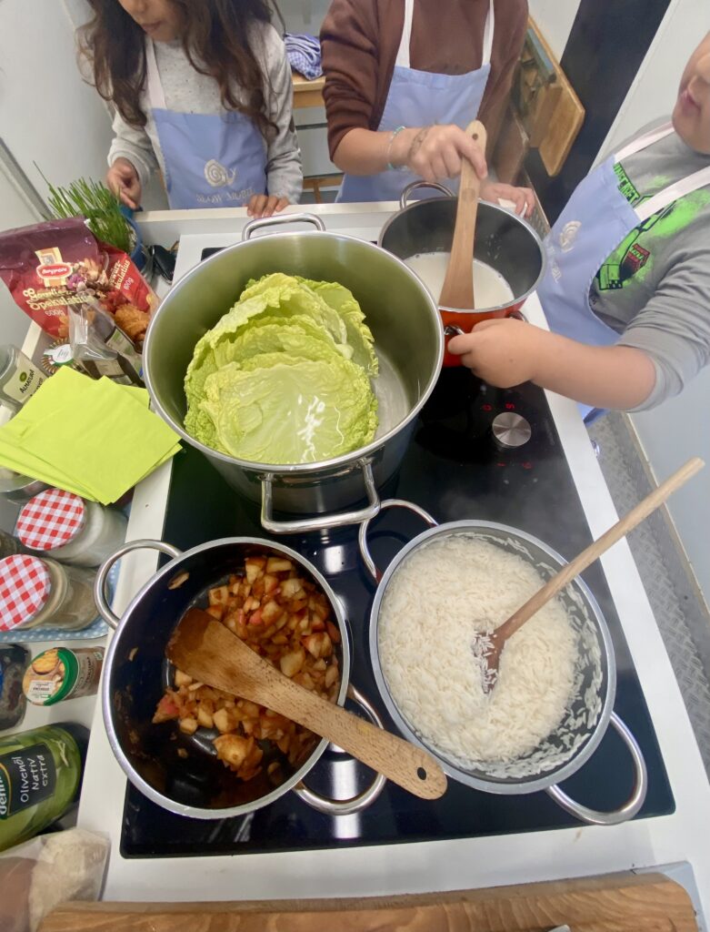 Gemeinsam kochen, den Tisch decken & genießen. Wir fördern die soziale Kompetenz in einer fröhlichen Runde.